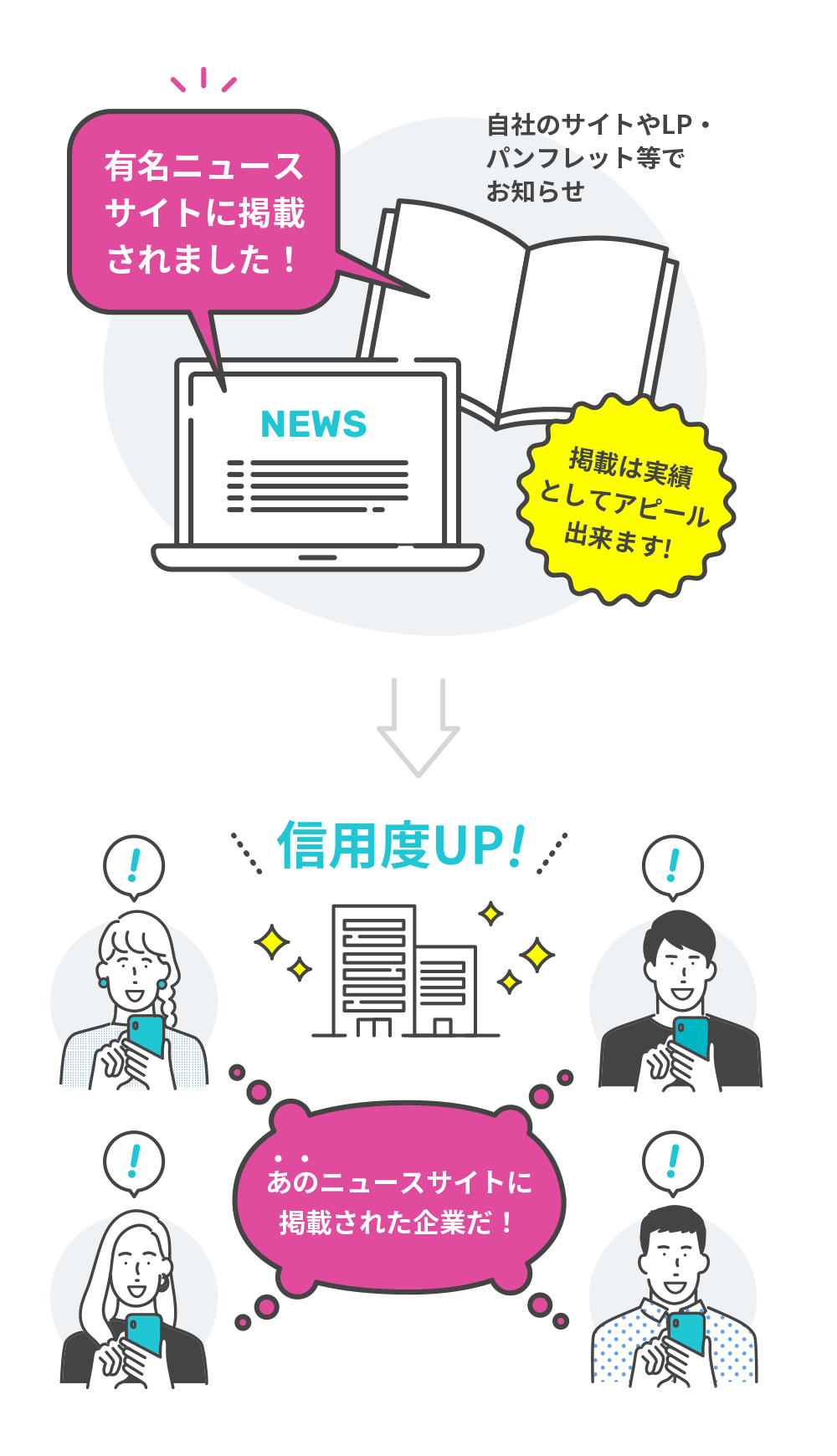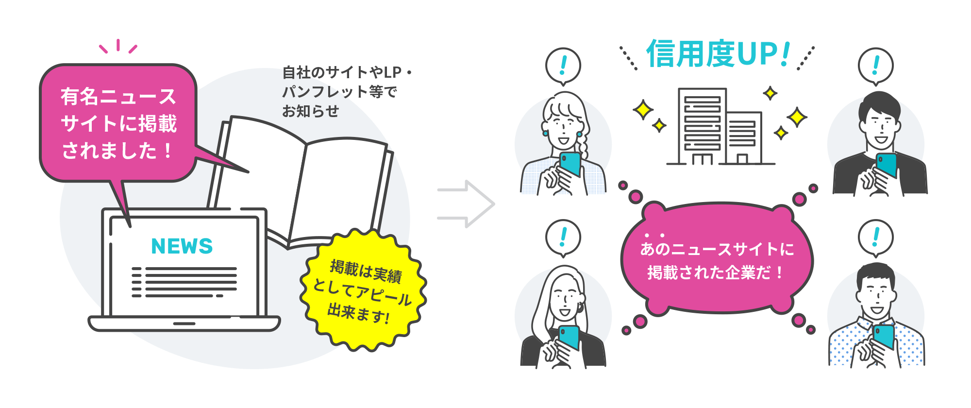 多くの人の目に触れる有名ニュースサイトに記事が掲載されることで、事業やサービスの認知度を高めることができます。