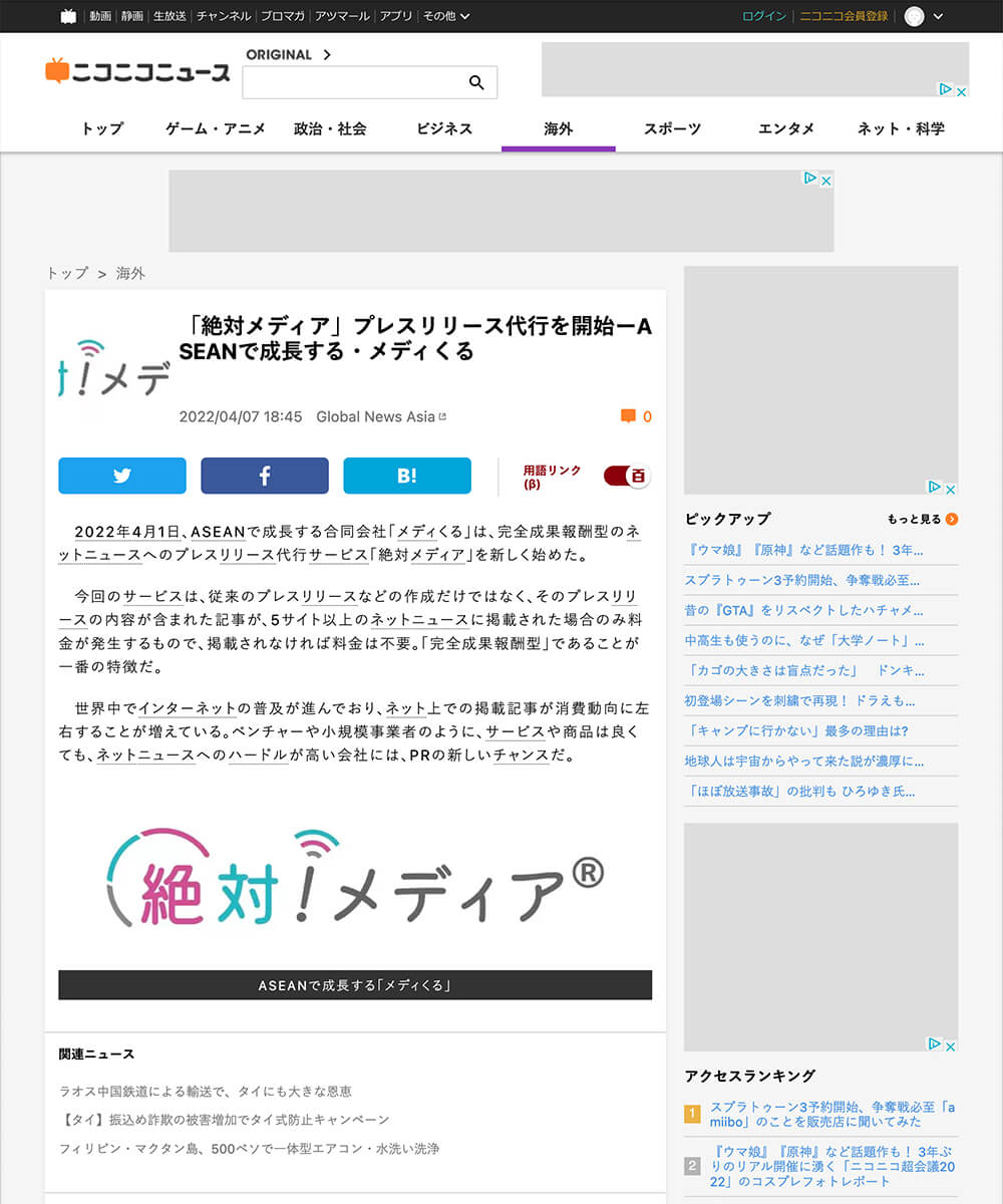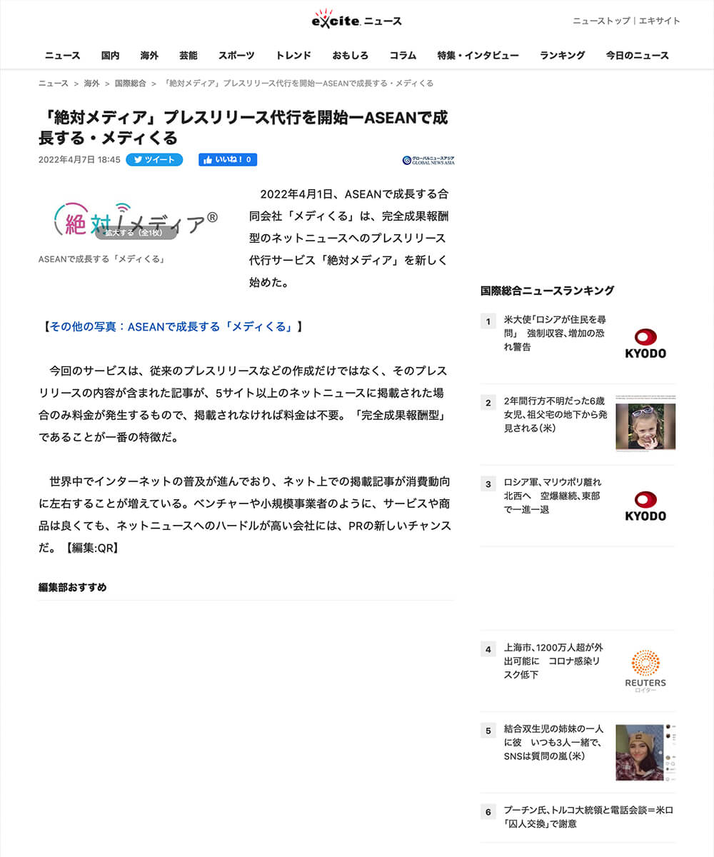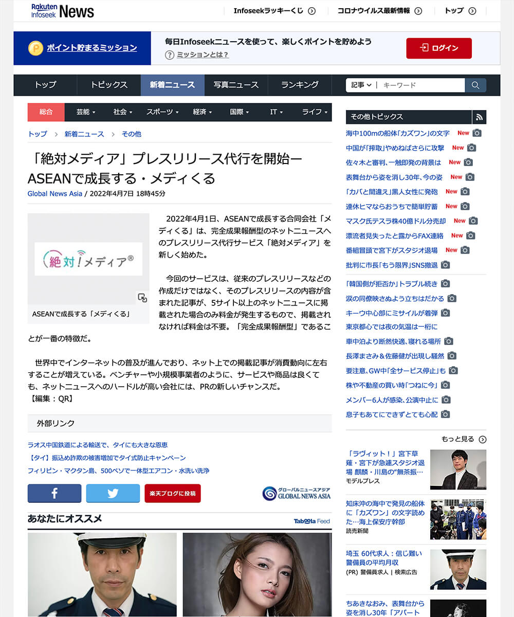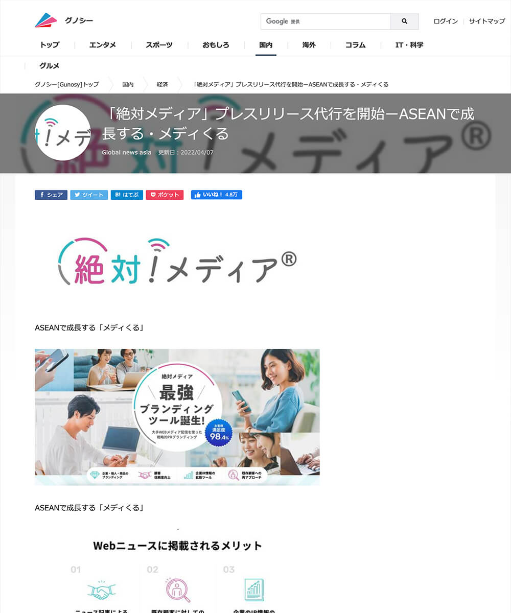 有名ニュースサイトへの掲載なので