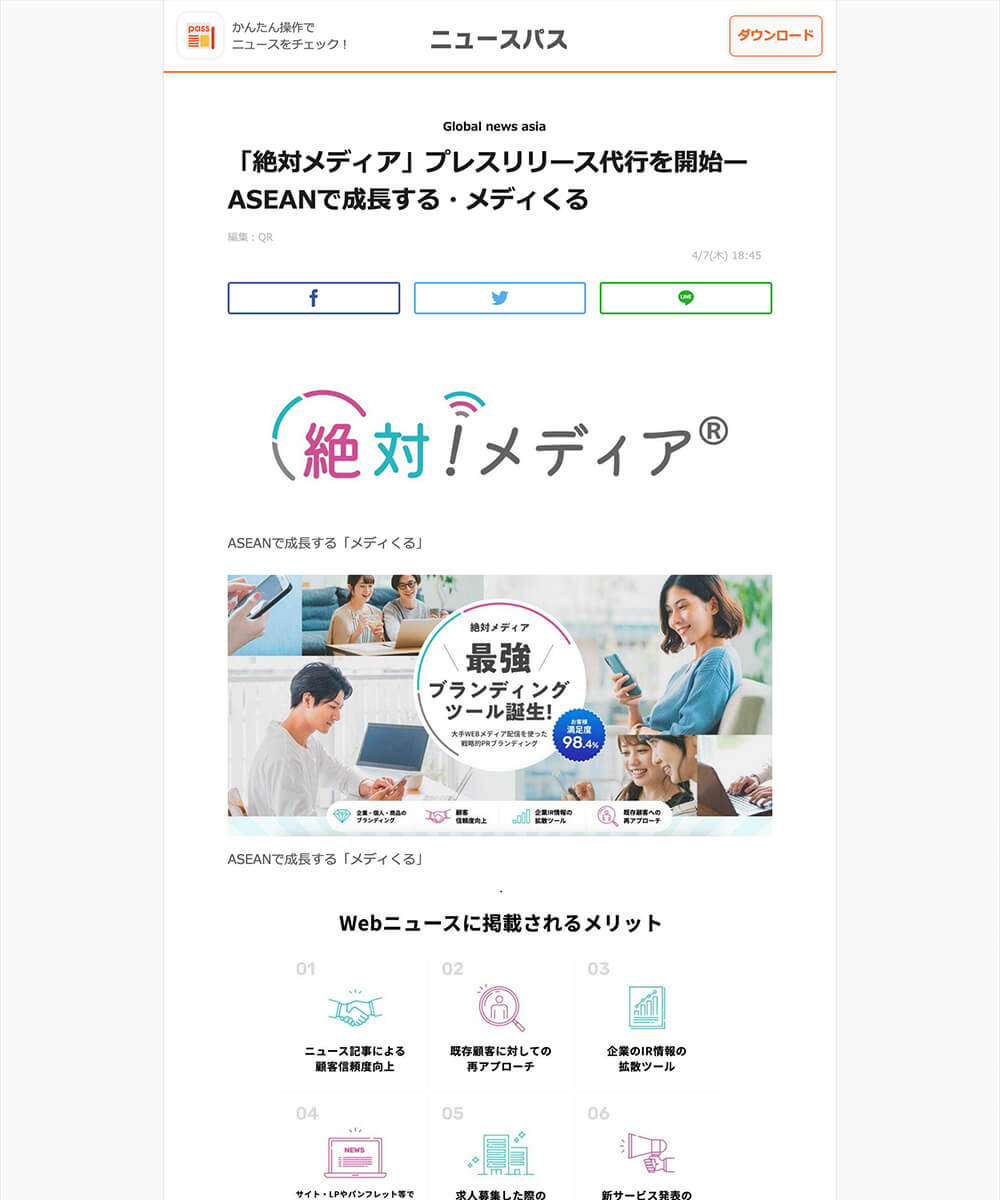 一度ニュースサイトに記事が掲載されると、拡散されて宣伝効果が相乗されることも見込まれます。時間と費用のかかる営業・広告に代わって有効的な宣伝効果が見込まれます。